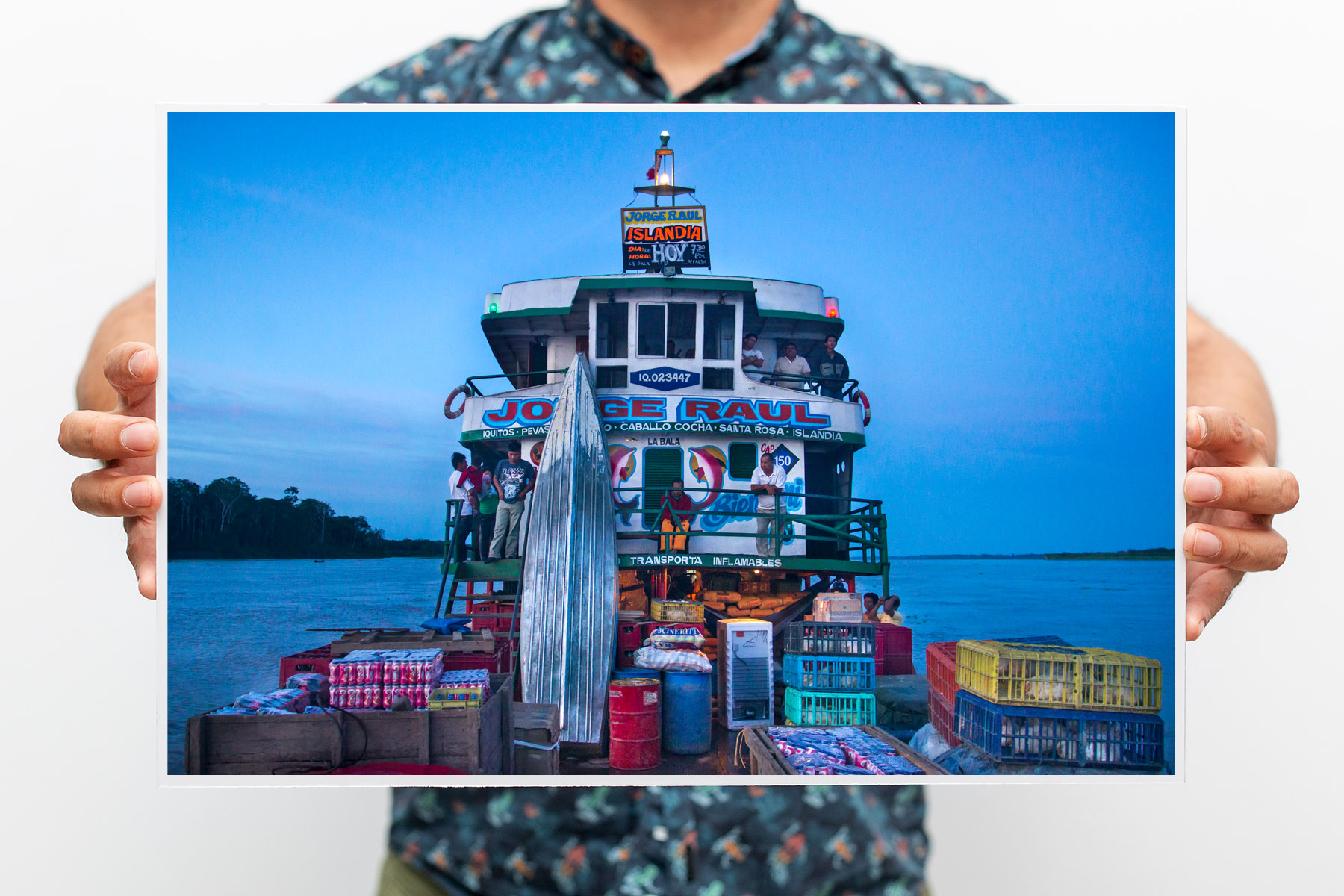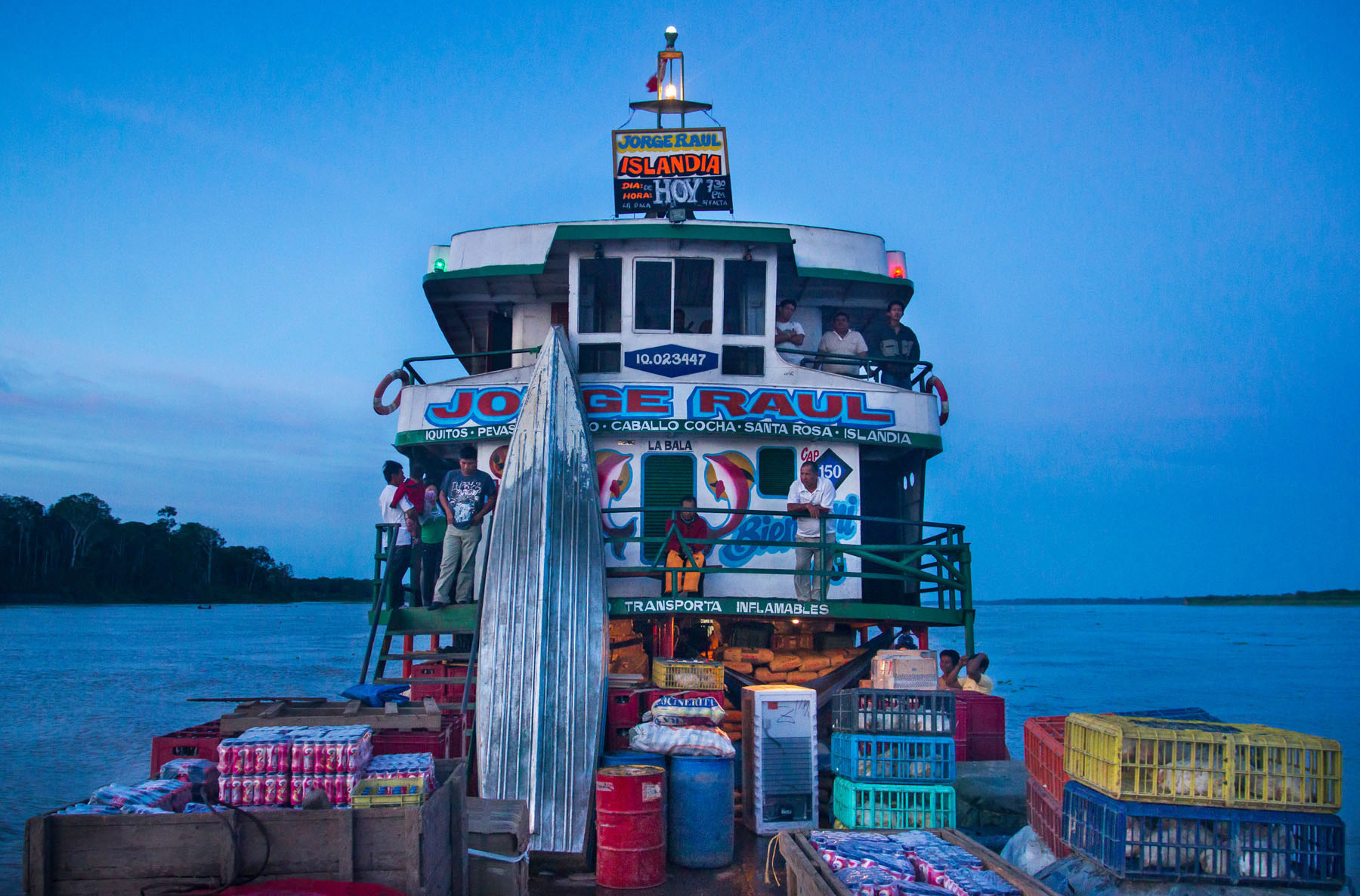 Jorge Raúl, lancha que navega el río Amazonas entre Iquitos y la triple frontera Perú-Brasil-Colombia, con destino final en el caserío de Islandia. Loreto, amazonía peruana.